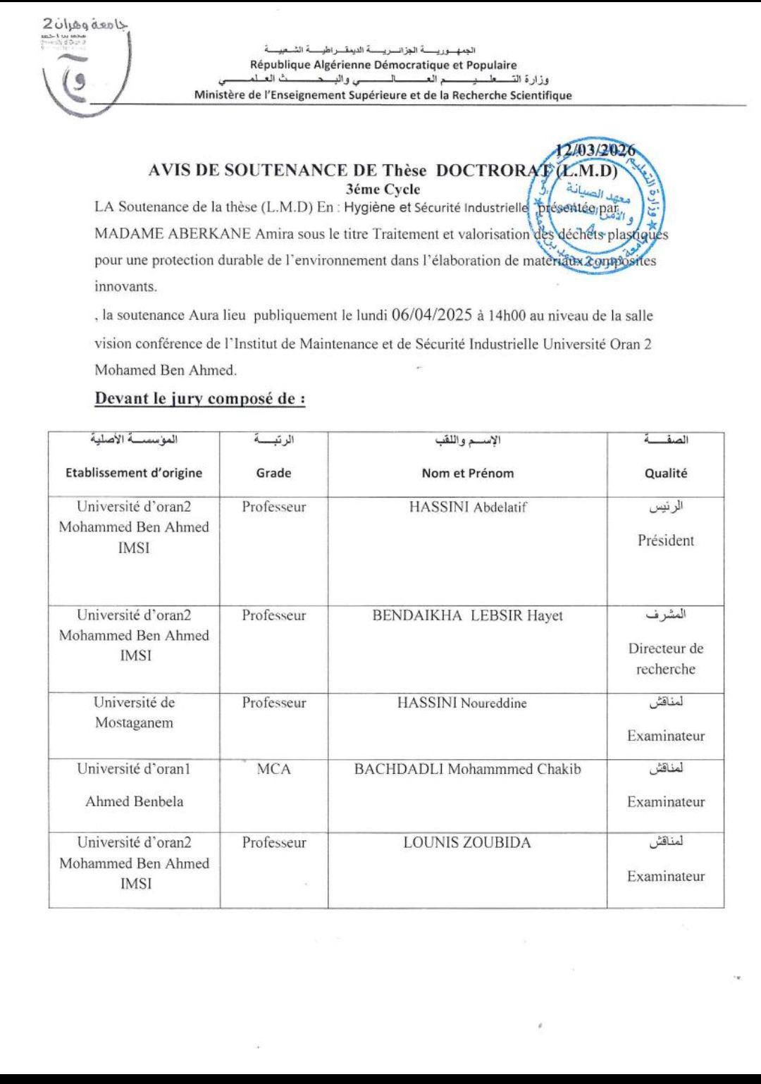 L’Institut de maintenance et de Sécurité Industrielle de l’Université d’Oran 2 Mohamed Ben Ahmed depuis son intégration en 1993 au Ministère de l’Enseignement Supérieur et de la Recherche Scientifique, a su se développer et s’adapter pour offrir des formations de qualité, ouvertes sur l’environnement socio-économique.